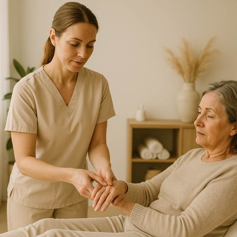 - Skånsom, tilpasset massage – fra beroligende greb til forsigtig dybde, altid efter din dagsform.